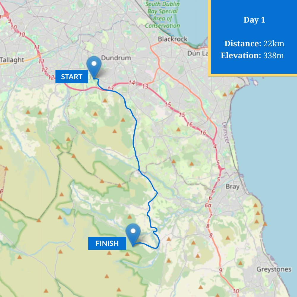 Your registration fee includes expert guides along the entire route, your fundraising pack and event t-shirt, overnight accommodation and breakfast at your hotel and transport back from Glendalough to Marley Park after the event.