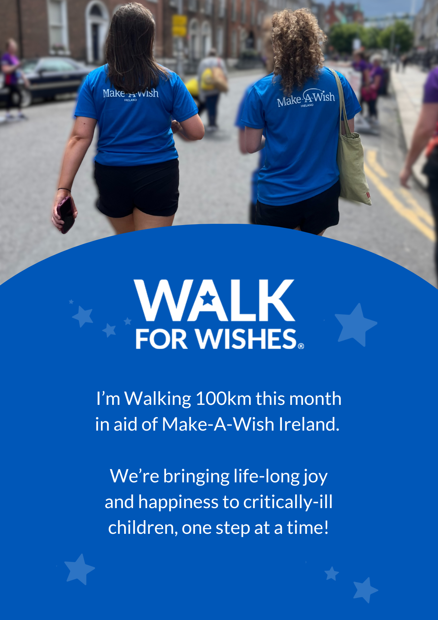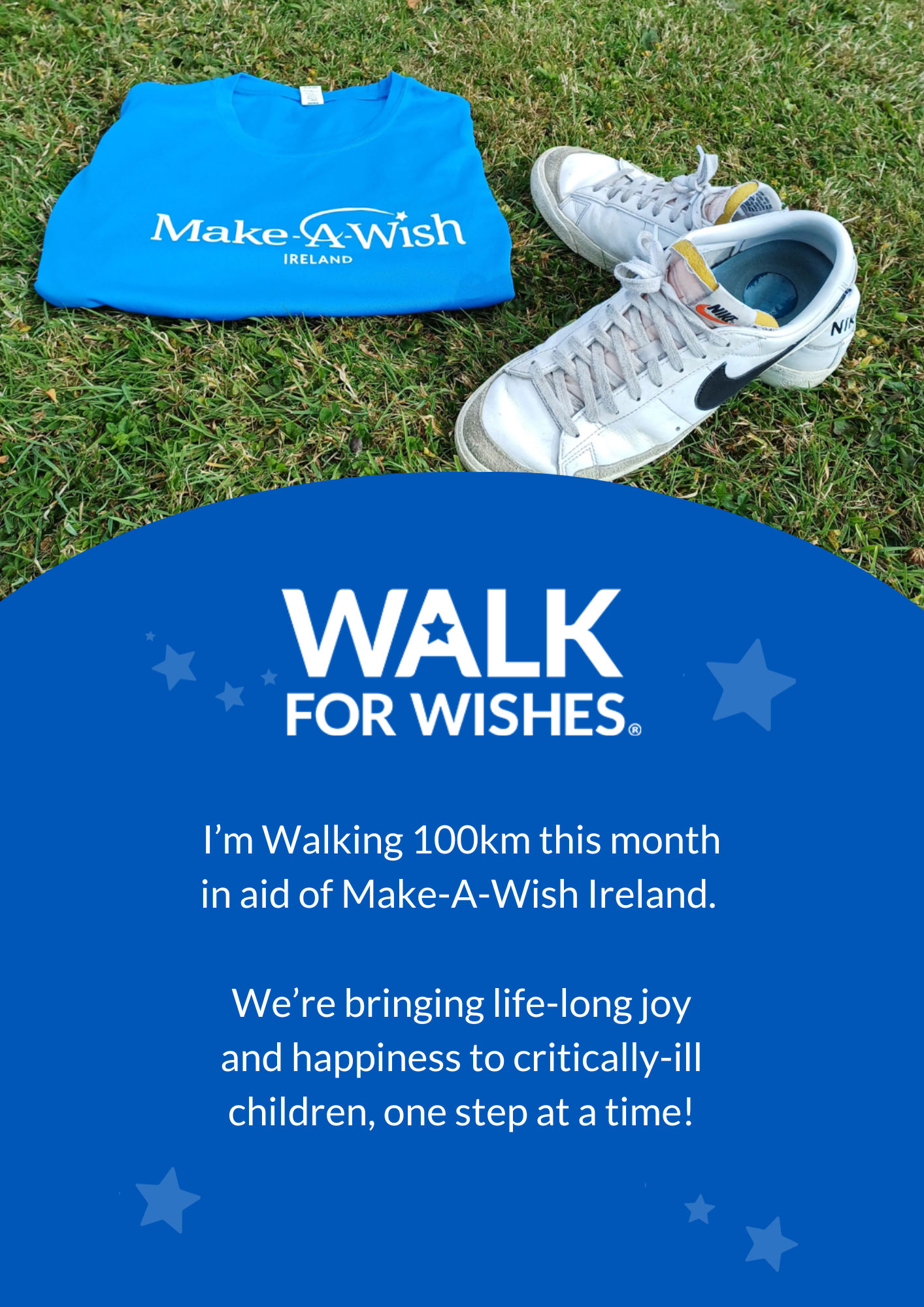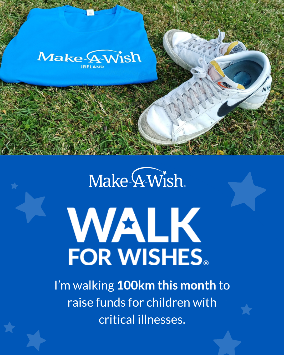Upon receiving your first donation, we will send you out your own Make-A-Wish Ireland t-shirt! Don’t forget to spread the word and share your fundraiser with family and friends!