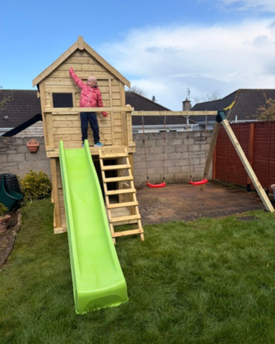 We contacted our friends at @Just_Fun_Playtowers, who helped to create the perfect custom Playtower just for Hayleigh. They took measurements of the garden back home, and custom built an incredible structure for Hayleigh, equipped with swings, a slide and a tower, with a playhouse on the second floor!