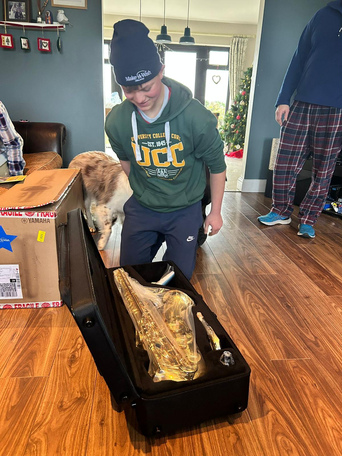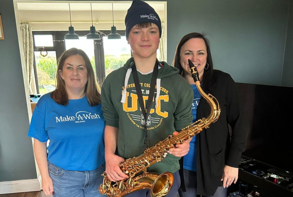 When our volunteers Louise and Lindsay met with Ted, his love for music shone through, and he told us all about his new found love for the Saxaphone. When Ted’s wish day arrived, our volunteers travelled to Cork to deliver Ted his brand new Yamaha Saxaphone!